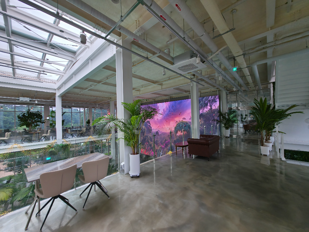 스크린으로 만든 인공폭포지만 나쁘지 않다.
