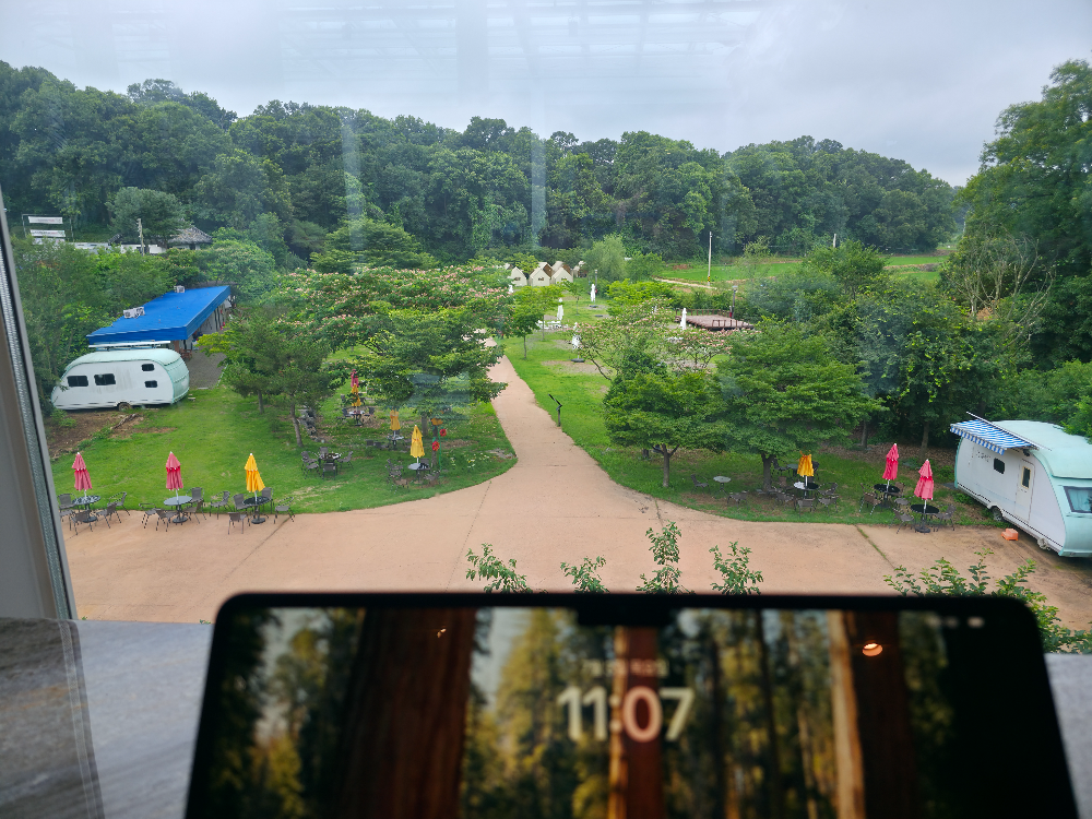 필자는 산책로가 보이는 좌석에서 본 포스팅을 작성했다.