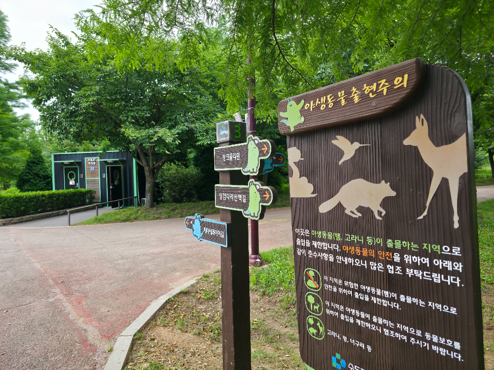 주차장 바로 앞에는 안내도와 화장실이 있다. 주의할점은 휴지통은 없다.
